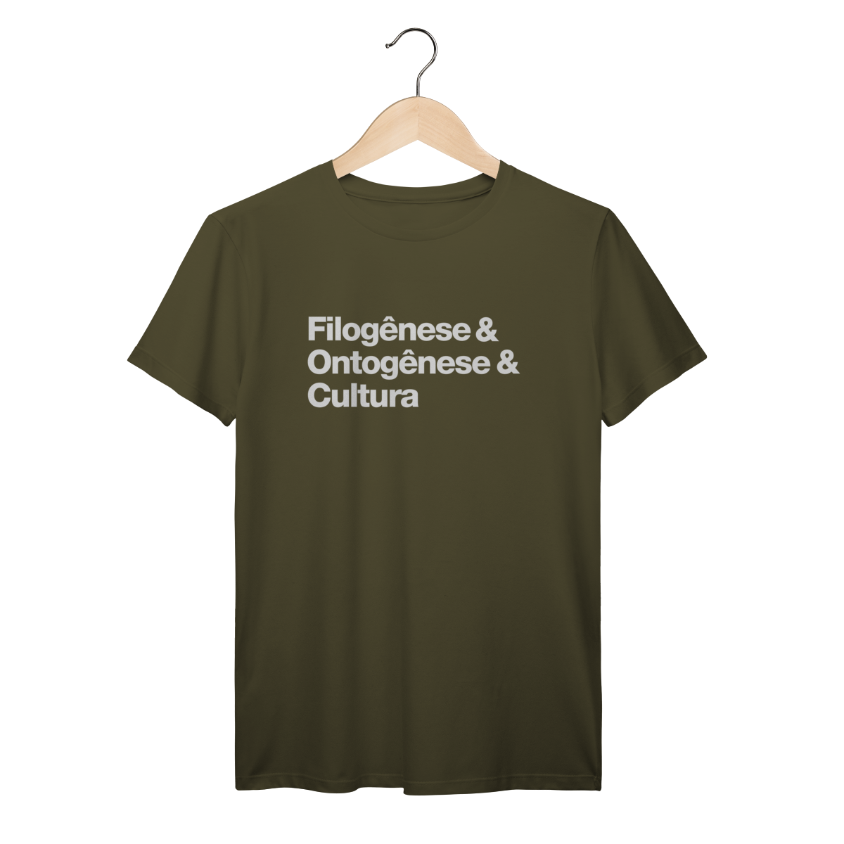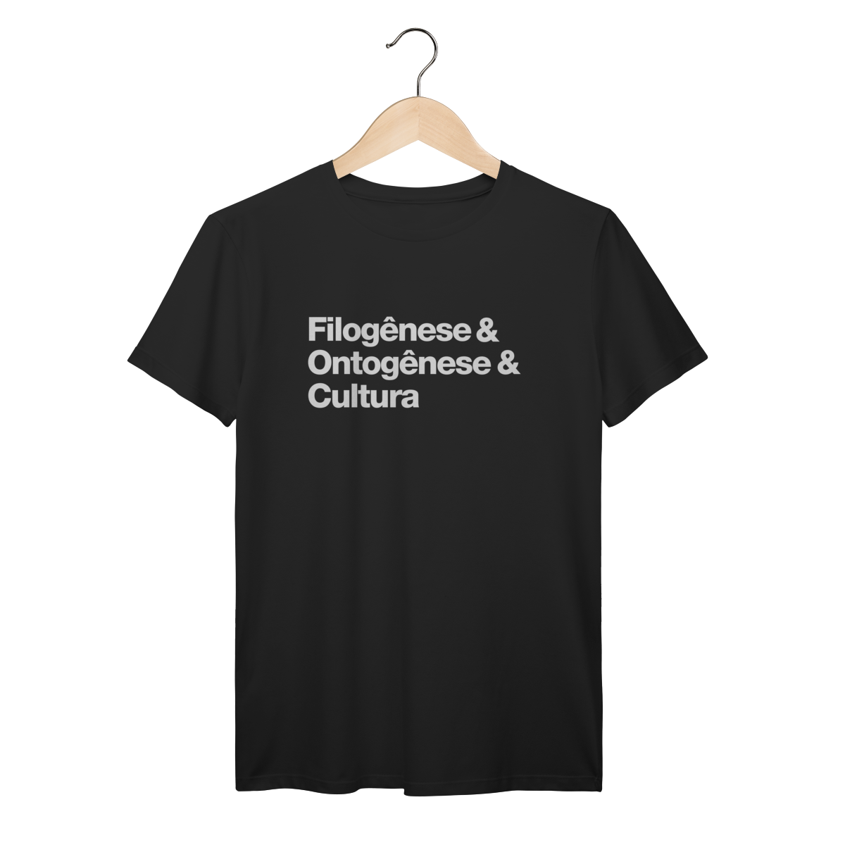 Essa camiseta traz o trio que explica (quase) tudo: da sua mania de dar like no ex até o motivo pelo qual você prefere gatos a pessoas. Um lembrete estampado de que somos produto da história individual, da evolução da espécie e do ambiente cultural, tudo isso com muito estilo comportamental.