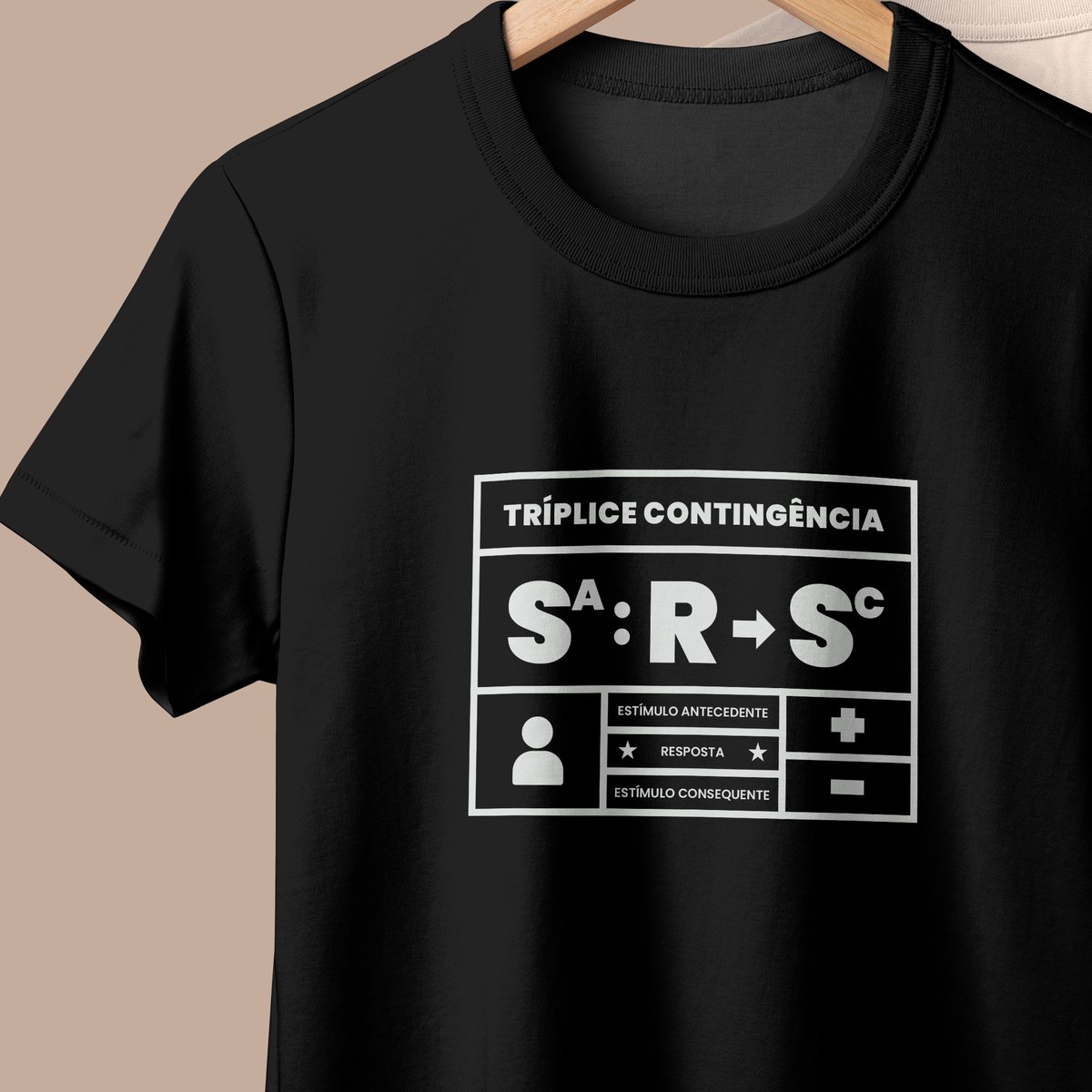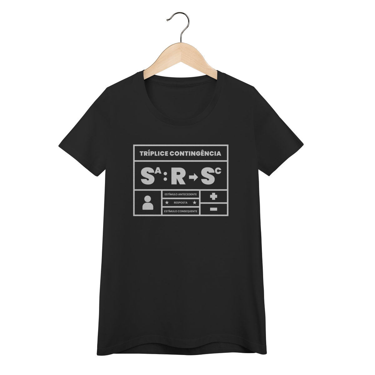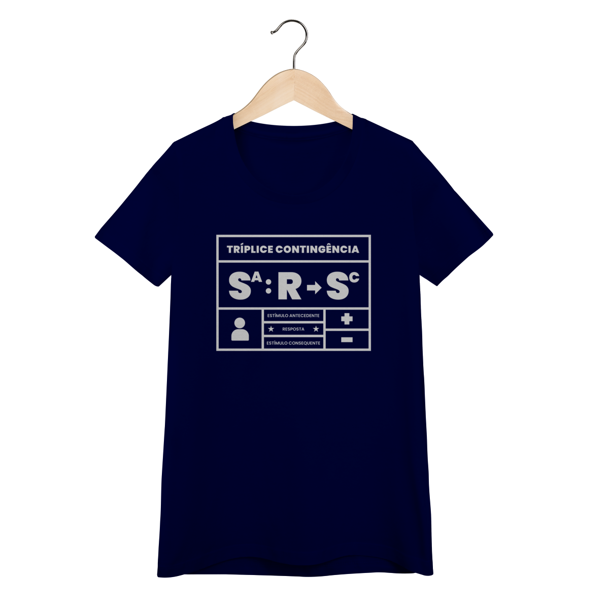 A tríplice contingência não é só um esquema, é a forma como entendemos o mundo. Essa camiseta traduz em poucas letras o que todo analista do comportamento sabe: o estímulo antecedente controla a ocorrência da resposta e a resposta produz o estímulo consequente. Simples, direto e elegante. Ideal para estudantes, profissionais e apaixonados pelo behaviorismo que querem carregar conhecimento no peito.