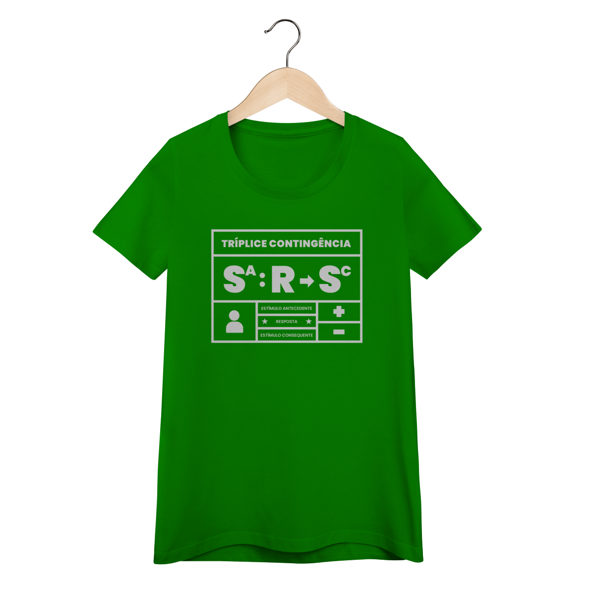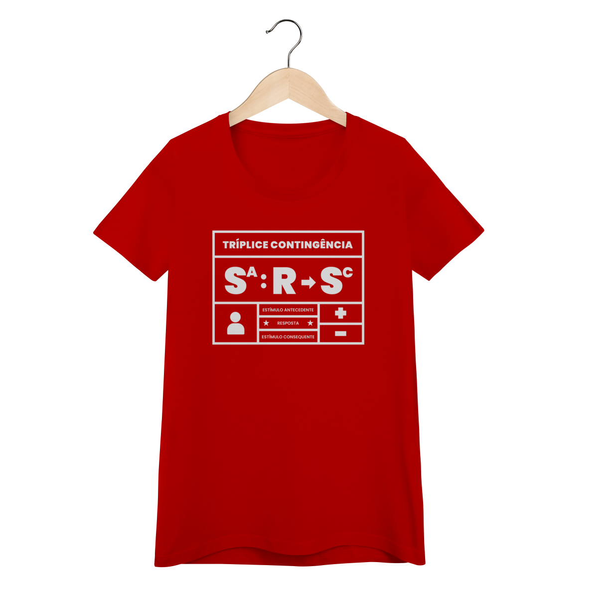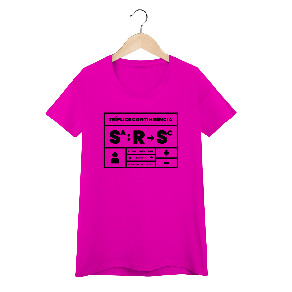A tríplice contingência não é só um esquema, é a forma como entendemos o mundo. Essa camiseta traduz em poucas letras o que todo analista do comportamento sabe: o estímulo antecedente controla a ocorrência da resposta e a resposta produz o estímulo consequente. Simples, direto e elegante. Ideal para estudantes, profissionais e apaixonados pelo behaviorismo que querem carregar conhecimento no peito.