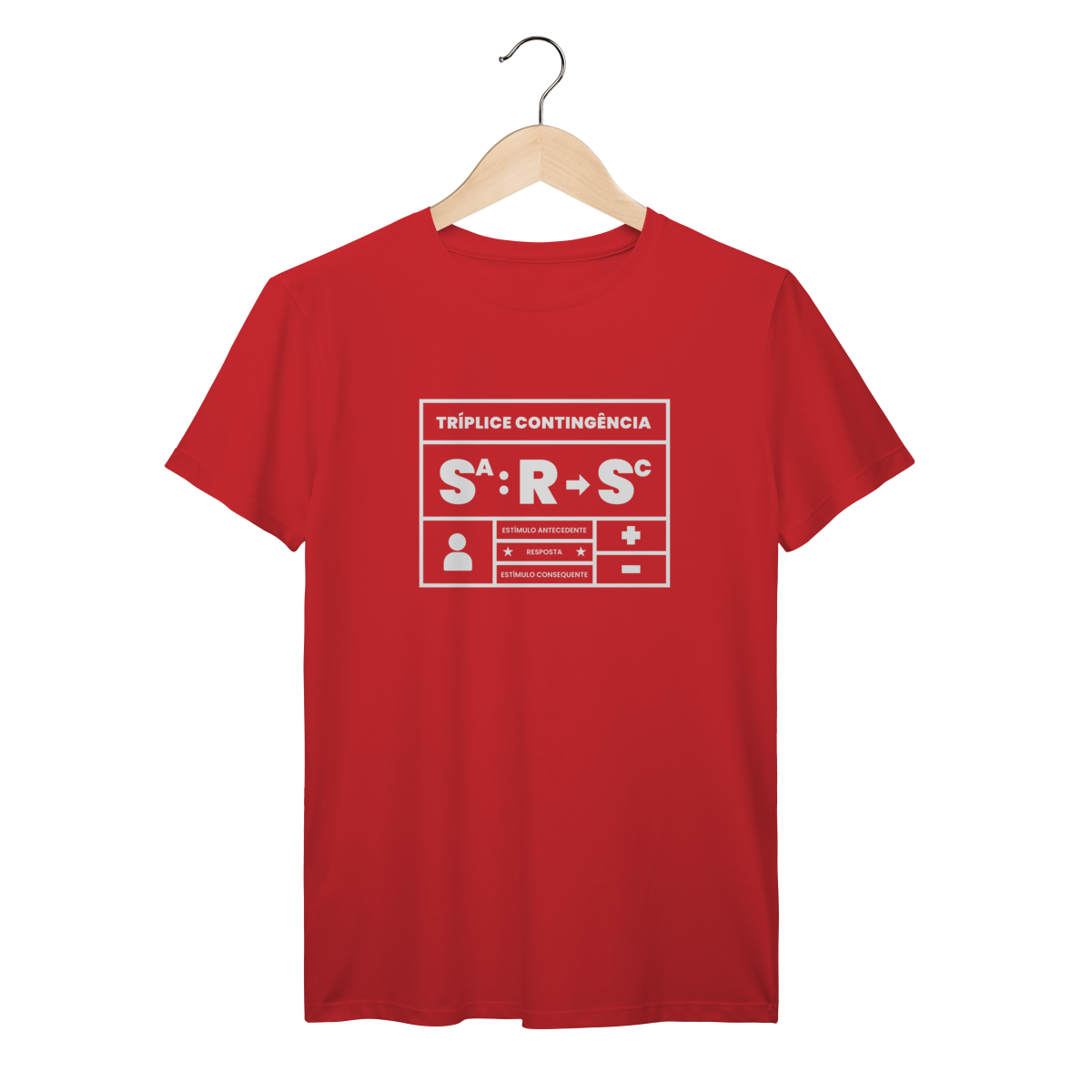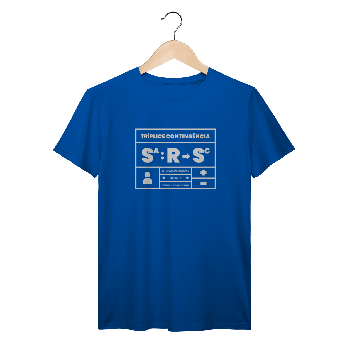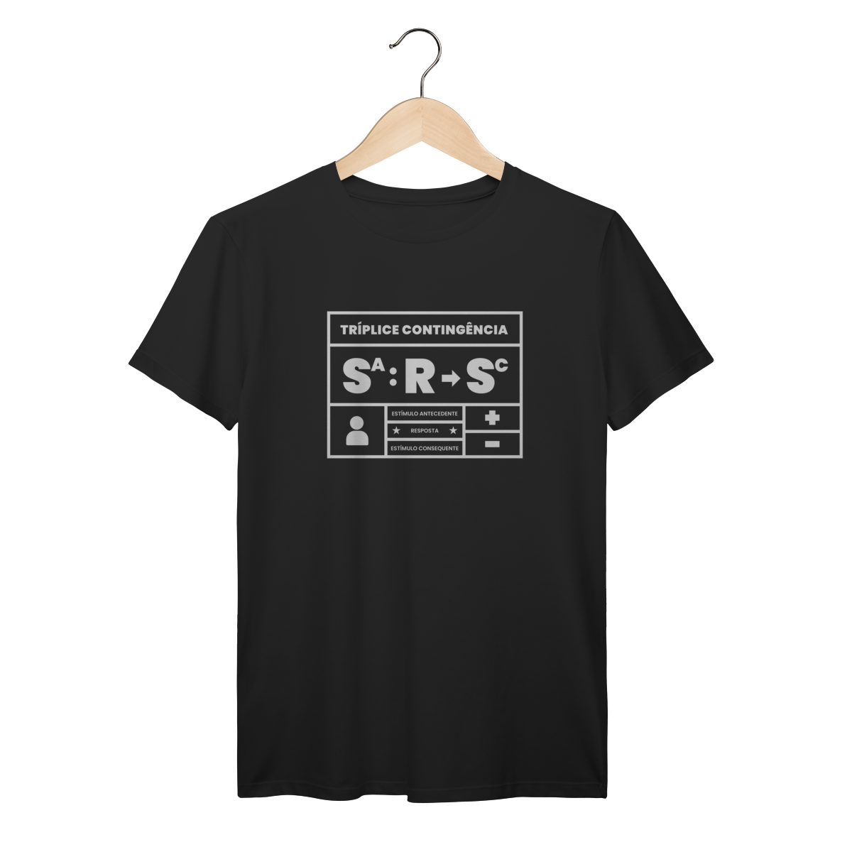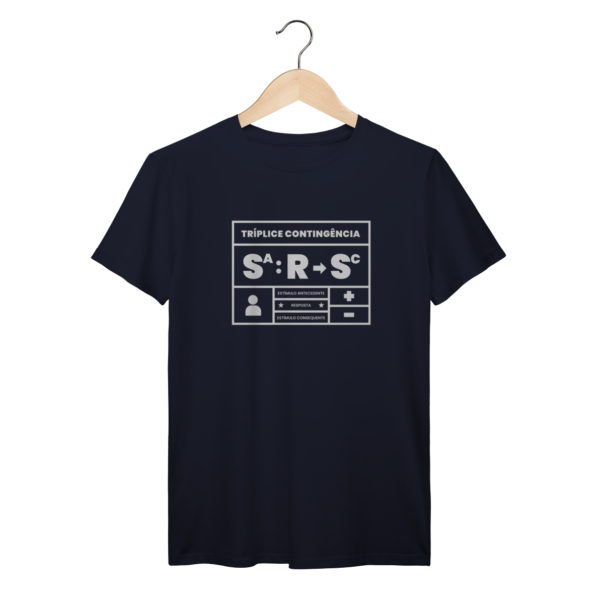 A tríplice contingência não é só um esquema, é a forma como entendemos o mundo. Essa camiseta traduz em poucas letras o que todo analista do comportamento sabe: o estímulo antecedente controla a ocorrência da resposta e a resposta produz o estímulo consequente. Simples, direto e elegante. Ideal para estudantes, profissionais e apaixonados pelo behaviorismo que querem carregar conhecimento no peito.